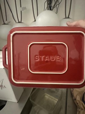 The Staub rectangular baking dish is a beautifully crafted, versatile, and durable addition to any kitchen. Guests appreciate its even heat distribution, easy cleanup, and elegant design. The dish is perfect for a variety of recipes and occasions, making it a must-have for home chefs seeking reliable and stylish bakeware.