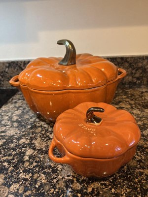 This pumpkin is perfect! I am a new Staub client but I can foresee many future purchases! I love the size and color. It will be perfect for my Halloween cooking.