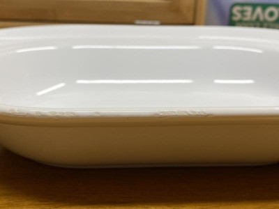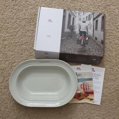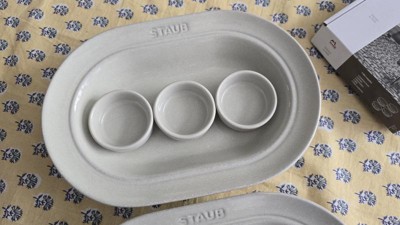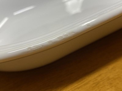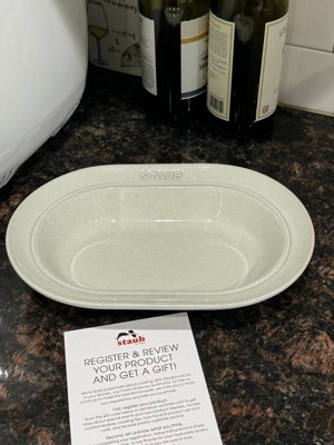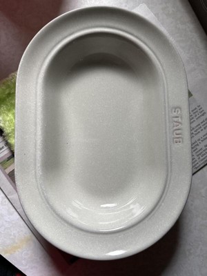 I got 4 of this oval plate last weekend. I didn’t use it yet. "There's a thick, raised line along the edge of two plates." Those are really visible. One plate has unfinished on the edge and visible pore spots. It is very disappointing. I can not believe that the Staub quality for ceramic wares has this bad condition. I have to return it!