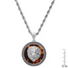 Steeltime 24" Men's stainless steel tortoise and simulated diamonds round Lion head pendant with greek key accents - 1 of 4