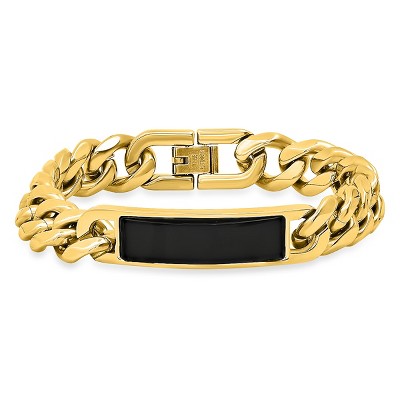 Men's 18k gold plated stainless steel cuban chain and stone id bracelet. Color Option: Brown, Black - 2 of 4Men's 18k gold plated stainless steel cuban chain and stone id bracelet. Color Option: Brown, Black - 3 of 4Men's 18k gold plated stainless steel cuban chain and stone id bracelet. Color Option: Brown, Black - 4 of 4