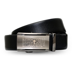 Steeltime Men's Simulated Leather Belt with Alloy "Lord's Prayer" Buckle. Size Options: S, M, L, XL - 1 of 3