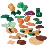 This food set is great and so far holding up to the 2 and 3 year old grandkids. The set did not include any of the wood pieces that are standing on end in the picture. We received only the plastic food.