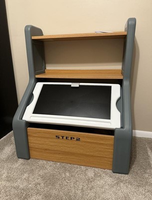 [This review was collected as part of a promotion.] I absolutely love this toy storage box. The quality is amazing. It has the perfect amount of room for toys. The shelves are made of wood and are perfect for books, stuffed animals or small containers. I like that my child is able to reach the shelves. It has a chalkboard lid that can also be used to hang artwork! It is very sturdy but easy to move. The instructions were clear and easy to follow. It took me about 30 minutes to build. This is one of my favortie products from Step2!