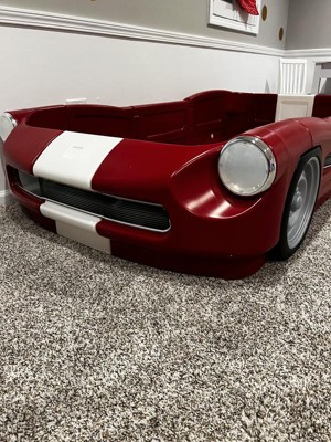 Bought this second Twin/Toddler Race Car Bed for my grandson since he’s done so well in the one at my house. This made the transition from crib to big boy bed so smooth. The 16 1/2” height with a 10” mattress in a box is the perfect combination. Easy to climb in and out of and he sometimes goes to play there just for fun. Easy assembly according to my daughter who has put two together. Details are lifelike and sturdy construction with no sharp edges like my twin trundles. Perfect addition to his nursery(fits in a very small bedroom with crib and dresser) and suits my sleepover playroom as well!