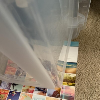 These storage containers are highly praised for their practicality and design, featuring hinged lids that prevent loss and allow easy access. Guests appreciate the clear plastic, which makes it easy to see contents, and the sturdy construction that holds up well over time. Ideal for organizing various items, from craft supplies to seasonal clothing, these bins are a versatile solution for any home. However, some guests noted issues with sizing and missing components.