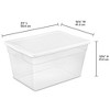 Whether you're looking for a specific sweater that's stored away or digging out the holiday decor, these clear boxes make everything easy to locate thanks to the see-through base plastic design. The lids snap firmly onto the base to keep contents contained and secure, and its fashionably contoured end panels create recessed handles for easy lifting and transporting. The lids' recessed shape also enables stackability, demonstrating vertical organization's ability to free up space. Blankets, towels, seasonal decorations, clothing, games, and other items fit neatly inside, letting you store them away without hassle.