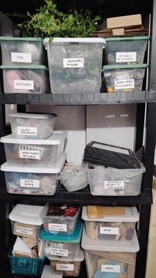 [This review was collected as part of a promotion.] I love these clear bins so I can see what is inside of them when on the shelf in storage! They are so sturdy and hold so much! I use them all around our home for organizing!