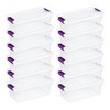 The 6-quart containers provide you with the exact space you need for carrying smaller household items. With identical latches, lids, and see-through designs, they pair perfectly with their 66-quart counterpart to create a sleek system of organization. Whether you're packing away shoes, crafts, or other small items, these storage bins are ideal for placement in closets, basements, garages, or attics and won't buckle, break, or leak in non-insulated environments.