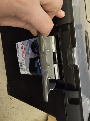 - Durable latch keeps lid secure and contents in place, use a small padlock or zip tie for added security