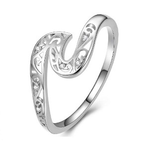 This beautiful tidal wave ring is crafted from sterling silver, offering a lustrous and durable finish. The unique design mimics the graceful movement of a wave, featuring intricate cut-out patterns that add depth and elegance. Sparkling crystals are carefully set within the wave, catching the light with every movement and adding a touch of brilliance to this exquisite piece. This ring is a perfect accessory for those who appreciate nature-inspired jewelry with a sophisticated touch, making it suitable for various occasions.
