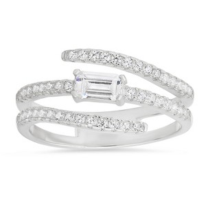 Product Name: Sterling Silver Baguette-cut CZ Crossover Ring