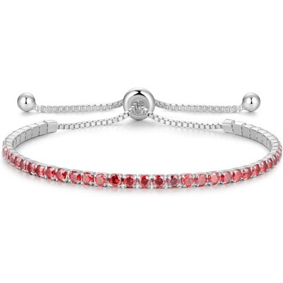 Sterling Silver Birthstone Tennis Bracelet - Adjustable 6.5-7 Inch, Anniversary Gift for Her