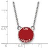 Show your greek life spirit with this Chi Omega Sorority necklace. It is crafted with rhodium plated sterling silver and is 18 Inches in length. The pendant is 12mm in width and 12mm in height (0.47 in x 0.47 in) and dangles from a 1.25mm wide cable chain. We are a certified Collegiate jewelry retailer and this authentic item is licensed by the Chi Omega Sorority and Greek Life. This enameled pendant necklace is made the USA. Additional features include: crafted with rhodium plated sterling silver; authentic and made in the usa; 18 inches in length; licensed by greek life and the chi omega sorority.