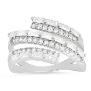 Sterling Silver CZ Baguette-cut Sprial Crossover Ring