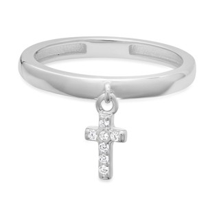 Sterling Silver Dangling Petite Cross CZ Ring - 1 of 2