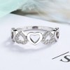 This beautiful sterling silver heart ring features an elegant design with multiple heart shapes adorning the band. Some of these hearts are crafted with a polished outline, while others are intricately filled with sparkling pave simulated diamonds, adding a touch of brilliance. The silver-toned finish gives this ring a classic and versatile look, making it a lovely accessory for various occasions. It is a charming piece that combines timeless appeal with a delicate sparkle.