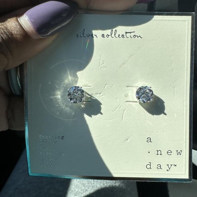 Sterling Silver Round Cubic Zirconia Stud Earring - A New Day™ Silver: Polished Nickel-Free Metal, Simulated Stone