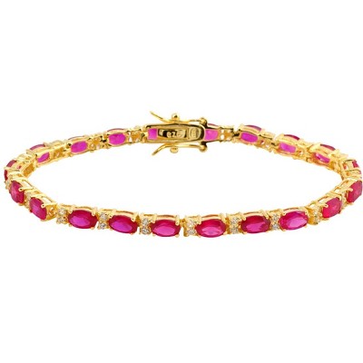 Product Name: Sterling Silver Ruby CZ Heart-cut CZ Tennis Bracelet