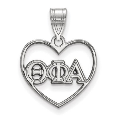• Unique Features - Show your greek life spirit with this Theta Phi Alpha Sorority pendant. It is crafted with rhodium plated sterling silver and without the bail is 19mm in height and 18mm in width (0.75 in x 0.71 in). With the bail, the measurements are 25mm in height and 18mm in width. We are a certified Collegiate jewelry retailer and this authentic item is licensed by the Theta Phi Alpha Sorority and Greek Life. This pendant is made the USA. Chain not included.