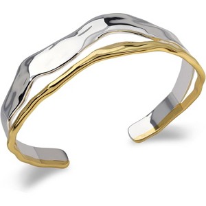 [Innovative Design] Made by splicing two different textures of metal, this cuff bracelet features a double-layer hollow design and combines with silver and gold tones. Each wave is handmade, giving this bracelet a unique texture that adds depth and personality