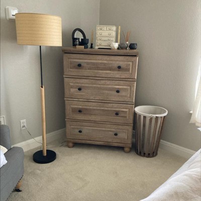 Lovely lamp. Heavy base with pretty wood features that compliment the metal accents. One thing is that it comes in 2 long wood pieces that you screw together. Those 2 wood pieces don’t match each other’s wood grain but that is expected when products are manufactured like that. Wish that it was slightly less expensive like 60 bucks range