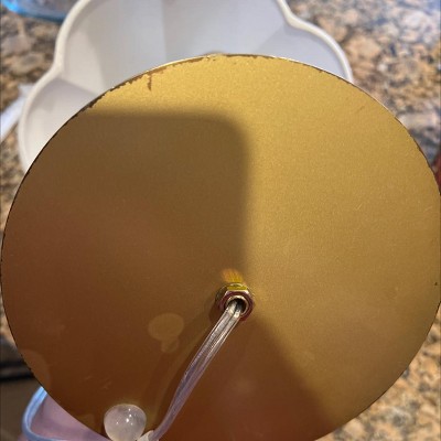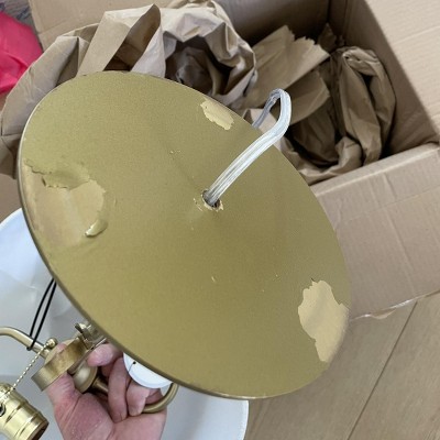 I am absolutely in love with the look of this lamp, it’s perfect for the vision of my daughters nursery. I did a pickup order because there was only one left and the reviews for shipped lamps were awful. There is one of the three feet attached on the bottom that’s needed for the lamp to sit correctly. The paint was chipping off all over on the bottom as well. Where you put the bulbs looks like a ring of a toilet paper roll between where the bulb goes and the metal frame and I thought it was packaging protection but it doesn’t actually come off. Again, the design is stunning but the execution is poor at best.