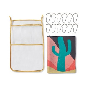 Stitch and Stone Fabric Shower Curtain Set Organizer Hook Set 70"x72" 14pc Set Desert: Polyester, Spot Clean, Hanging Mesh Caddy
