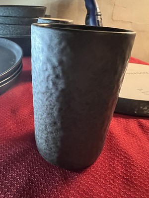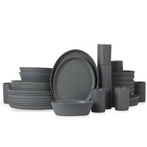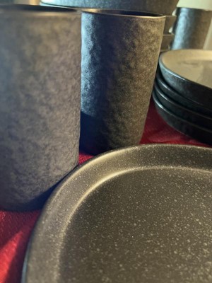[This review was collected as part of a promotion.] I was so excited to own this charcoal dinnerware set! They are just like what I expected, from color to shape, to texture. The charcoal color is very close to black but much modern than a solid black color, and LOVE LOVE the shape being oval than round. The texture is a bit matt not glossy which is exactly what I LOVE also. Makes the dishes look so elevated! The only thing to call out is the bottom of the item is not glazed so be careful when place them on light color table cloth/placemat.