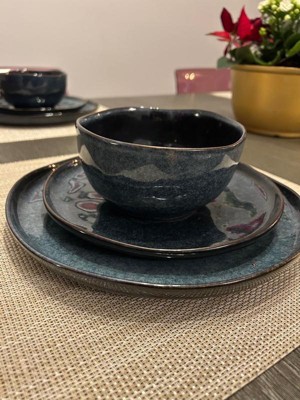 [This review was collected as part of a promotion.] Very excited about this set! The dark blue is beautiful and rich! The pieces each feel heavy and high quality! I love that each one is a bit unique! The bowls are a bit small for full meals, but make great ice cream/snack bowls! The surface of the small plate is a bit bumpy (pictured) which I think was intentional, but something to note. Overall thrilled with this set!