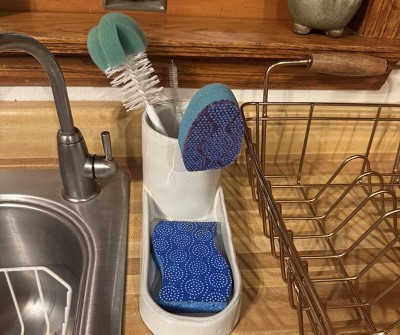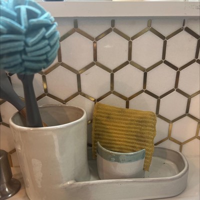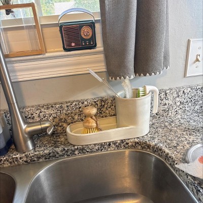 Stoneware Kitchen Sink Caddy Sour Cream - Hearth & Hand™ with Magnolia: Glazed Utensil & Sponge Organizer