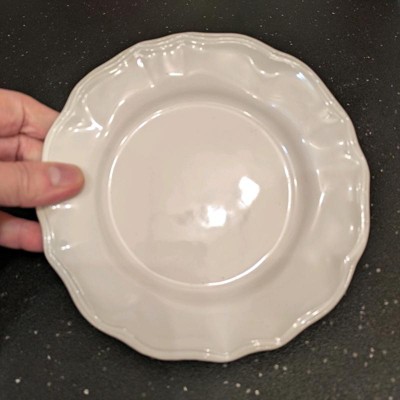 [This review was collected as part of a promotion.] This appetizer plate is a great size and I absolutely love the design. It’s so pretty - even prettier in person - and I adore the wavey design on the edges. It’s a ceramic feel as opposed to plastic or mellimine so that’s an added bonus. It’s an affordable way to have timeless and beautiful plateware! It’s also microwave and dishwasher safe which is super super awesome!