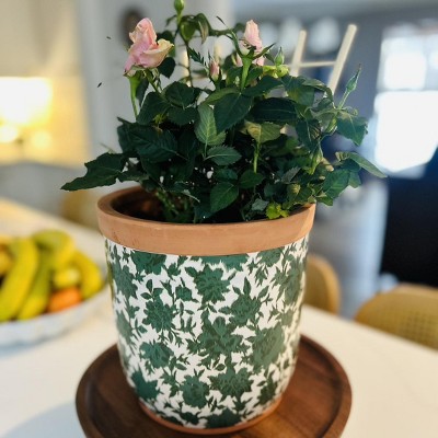Floral patterned terracotta planter
