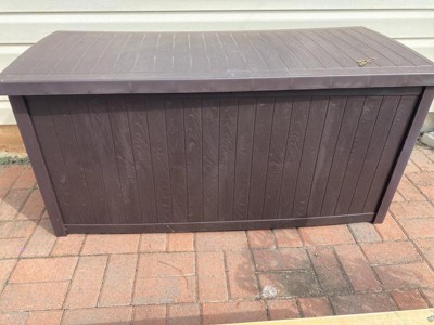 [This review was collected as part of a promotion.] I have a two level deck and a pool next to it. It totals about 800 sq ft. Between pool stuff and kids stuff everywhere, I needed something for storage. This deck box is nice and a good size. I love the dark brown color to it. The instructions were a bit iffy and had an error in it, but I managed to catch the mistake and continued to put it together without any problems. The box has a spot to put a lock on it, which is nice. It seems pretty durable so far with kids opening and getting in it a lot. I recommend this deck box for your outside storage needs.