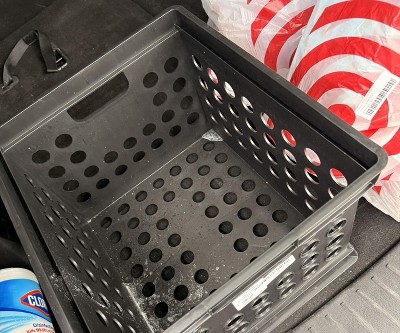 Storage Crate Black - Room Essentials™: Plastic Stackable Utility Bin, Portable with Built-In Handles, 30.6L Capacity