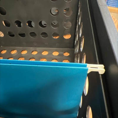 Bought this for hanging files. The crate is not the right size for hanging files. You can hook one side but not the other. If you push in the side you can get it hooked but then you can’t move the file. I will keep for storage in my classroom but it’s a huge disappointment for hanging files.