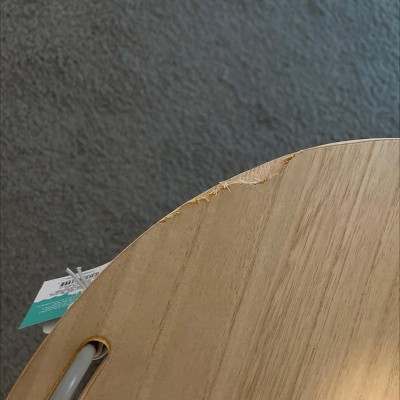 I had higher hopes for this item in terms of quality. The metal wire of the basket is just a little stronger than a clothes hanger and was bent in shipping. The tabletop is not solid wood, with rough cut edges where it is glued together- it’s also unfinished and needs a sealer to use as a side table without getting filthy fast.