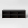 Equip your entertainment space with this TV Stand with Storage for TV's up to 70" from Room Essentials™. This TV stand with storage makes a practical addition to your living room or entertainment area. It features a sleek rectangular shape to bring modern style to your interior, and a neutral color that coordinates with any decor. The six open shelves provide plenty of room for storage of media essentials and decorative accents, while the flat tabletop offers the ideal space for a television up to 70-inches. Plus, the two holes on the back of the unit offer easy cable management for your media players. For help with assembly, please refer to the assembly video that can be found within the image carousel above.