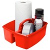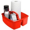 Storex Large Caddy, Red, Pack of 3 | This large caddy has two large compartment to store art supplies, washing accessories, or anything you need to keep handy. Sort your supplies for easy use and storage. The comfort grip, rounded handle has no sharp edges. Completely washable and dishwasher safe. Take your supplies from the closet to the work table quickly and simply. The caddy is made of impact-resistant plastic, and stacks and nests deeply. Caddy measures 13"L x 11"W x 6.375"H. Sold as a pack of 3 caddies.