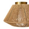 - Flush mount light fixture with natural paper rope shade and brushed gold iron base