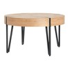 Storied Home Round Reclaimed Wood Side Coffee Table with Sturdy Metal Legs Black/Natural: 4 Point Leg Base, Beige Top