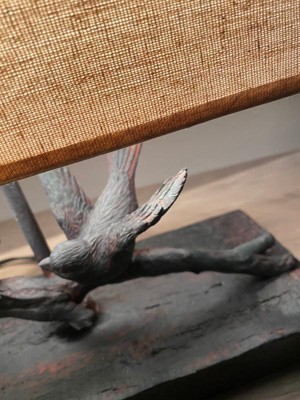 Storied Home Rustic Resin Bird Table Lamp with Rectangle Shade Black/Gold Finish: ETL & UL Listed, Polyresin Body