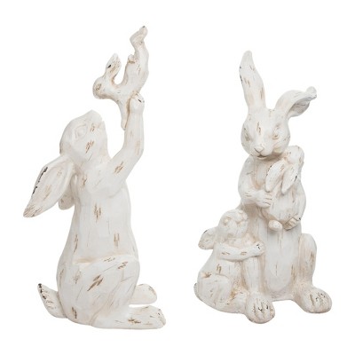Storied Home Whitewashed Polyresin Bunny Rabbit Quartet