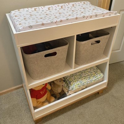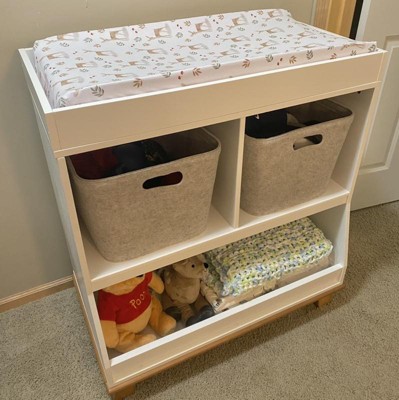 We love this changing table! The storage is so convenient. We will continue to use it after our baby grows out of needing the changing table for storage/books!
