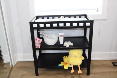 [This review was collected as part of a promotion.] Received this for free from Influenster! I absolutely love this changing table. This thing is a game changer in changing a baby. Love the black color of the wood. This came with a bonus water resistant changing pad which is so easy to clean. This is a nice size and very durable. I love the underneath part as well to store things. I plan on adding some like storage containers to add some more cuteness to this in my baby’s room. Assembly was a breeze!!