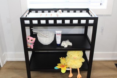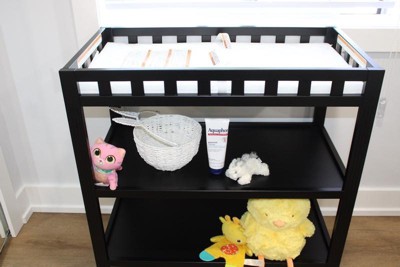 [This review was collected as part of a promotion.] Received this for free from Influenster! I absolutely love this changing table. This thing is a game changer in changing a baby. Love the black color of the wood. This came with a bonus water resistant changing pad which is so easy to clean. This is a nice size and very durable. I love the underneath part as well to store things. I plan on adding some like storage containers to add some more cuteness to this in my baby’s room. Assembly was a breeze!!