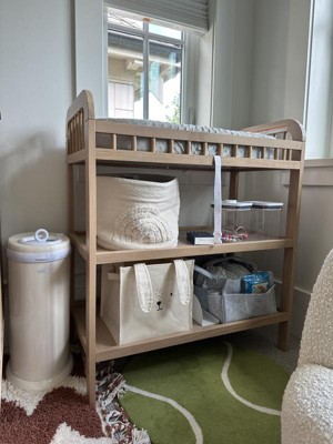 [This review was collected as part of a promotion.] Setting up the Pasadena Changing Table was a breeze, thanks to its clear instructions and sturdy build. Its ample storage space kept everything organized, while the sleek design added a touch of elegance to our nursery. Safety features like guardrails gave me peace of mind during diaper changes, and as my baby grew, it seamlessly transitioned into a storage unit for toys and essentials. Overall, investing in the Pasadena Changing Table simplified our routine and elevated the look of our nursery. It's a must-have for any parent seeking convenience without compromising style.