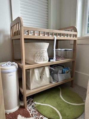 Before I begin this review, with full disclosure, I am an employee of Storkcraft. That being said, I want to say that we chose this changing table because we loved the idea of a dedicated space to change our baby, and the open shelves. The open shelves are amazing — flexible storage, and the perfect size to keep storage cubes, pacifiers, and diapers. The changing table took me less than 15 minutes to build on my own.