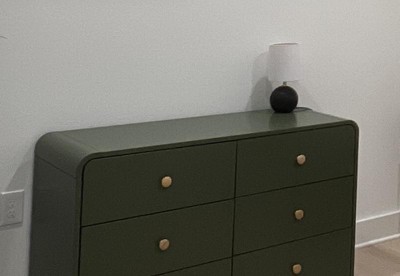 [This review was collected as part of a promotion.] From the pictures, I knew it would be the perfect piece BUT in person, it’s absolutely stunning! Aside from the great quality, beautiful round edges and the gorgeous olive color…my favorite feature is that you can only open one drawer at a time. It’s also super easy to assemble because they already have the drawer slides attached! I would recommend!
