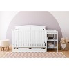 - INCLUDES STORAGE DRAWER AND CHANGING TABLE: Includes full-size drawer with 2 compartments, allowing you to conveniently store and organize your nursery items and essentials; Attached changing table includes 2 open shelves, water-resistant changing pad, and safety strap